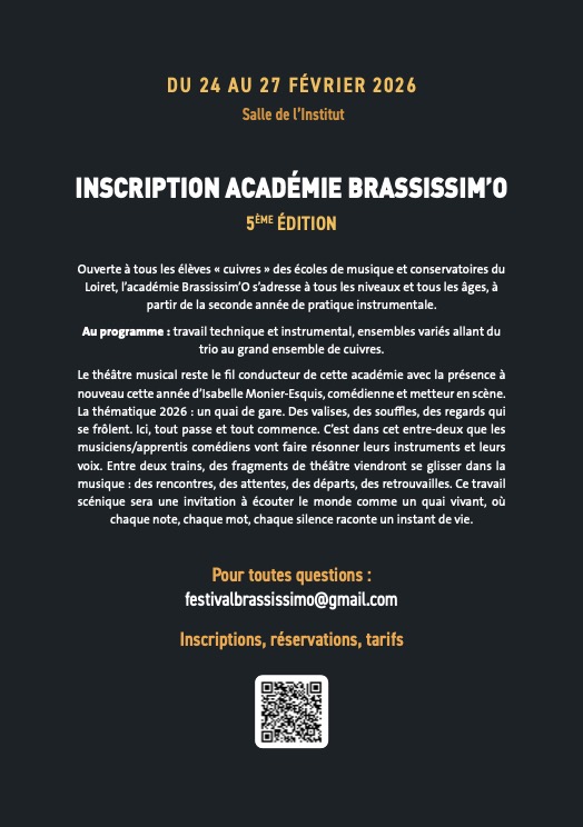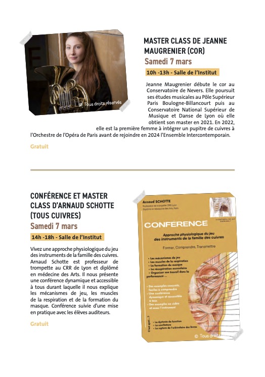 - Samedi 7 mars – 14h : conférence et master class tous cuivres par Arnaud SCHOTTE